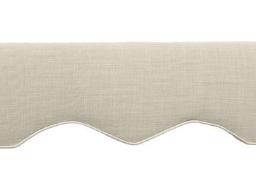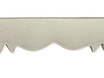 A padded cornice that features a curved center design with partial scallops at each end.