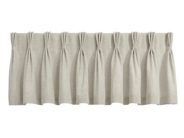 A pinch pleated valance, available in Three Finger Pinch Pleat (shown) or Inverted Pleat, with multiple fullness options.